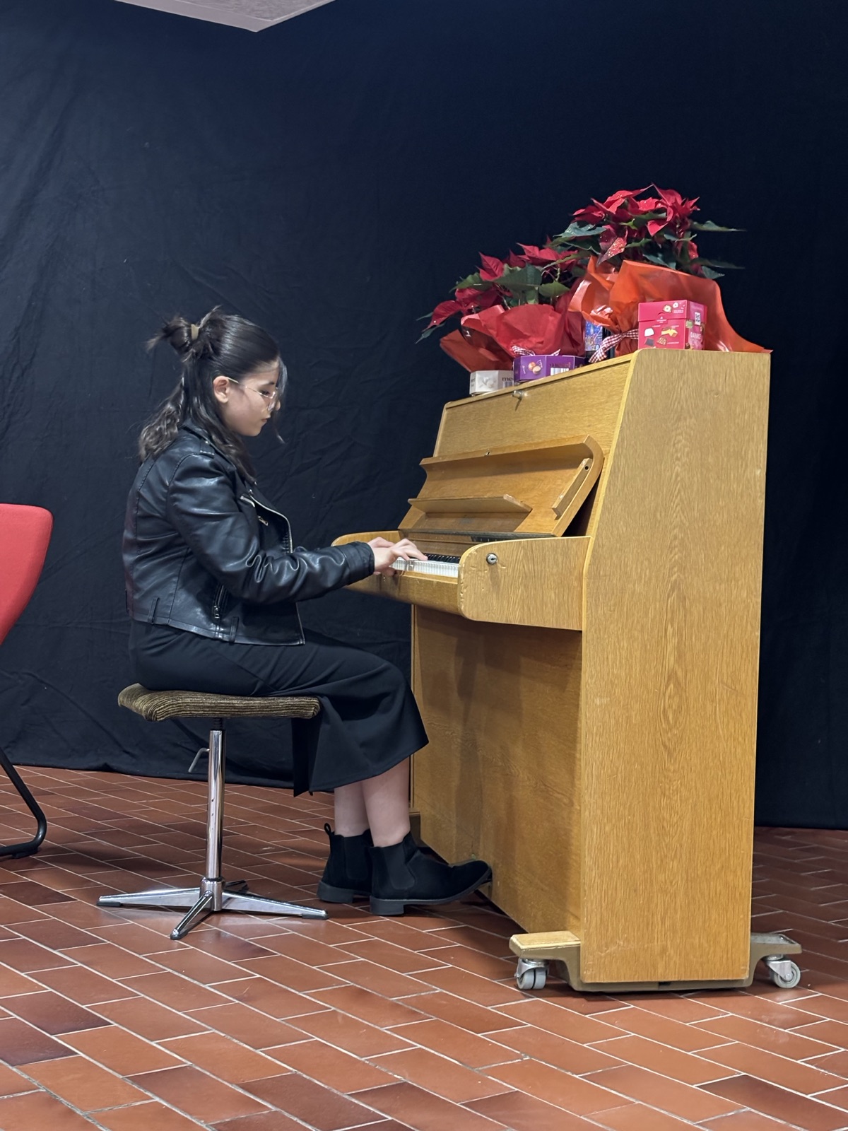 Mit einem festlichen Klavierstück eröffnete eine Schülerin die Weihnachtsfeier der Vollmarschule am 11. Dezember. Im Anschluss begrüßten die Schülersprecher herzlich die zahlreichen Besucher. Darauf folgte eine Rede der Rektorin Frau Dalferth.