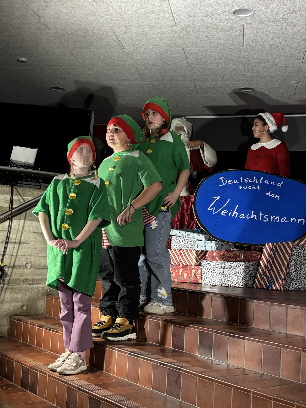 Ein besonderes Highlight des Abends war das Theaterstück „Deutschland sucht den Weihnachtsmarkt“, das von Schülerinnen und Schülern verschiedener Jahrgangsstufen mit viel Humor und Kreativität auf die Bühne gebracht wurde. Die gelungene Mischung aus Witz, Musik und schauspielerischem Talent begeisterte das Publikum und sorgte für zahlreiche Lacher.