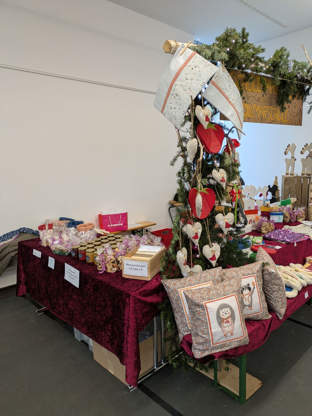 Auch dieses Jahr haben wir wieder tolle Produkte auf dem Weihnachtsmarkt in Geradstetten am 7. Dezember verkauft. Es wurde Genähtes und Dekorationsartikel aus Holz angeboten, die fleißige Schülerhände in der Projektwoche gefertigt haben. Außerdem gab es leckere Plätzchen und Marmelade zu erwerben.